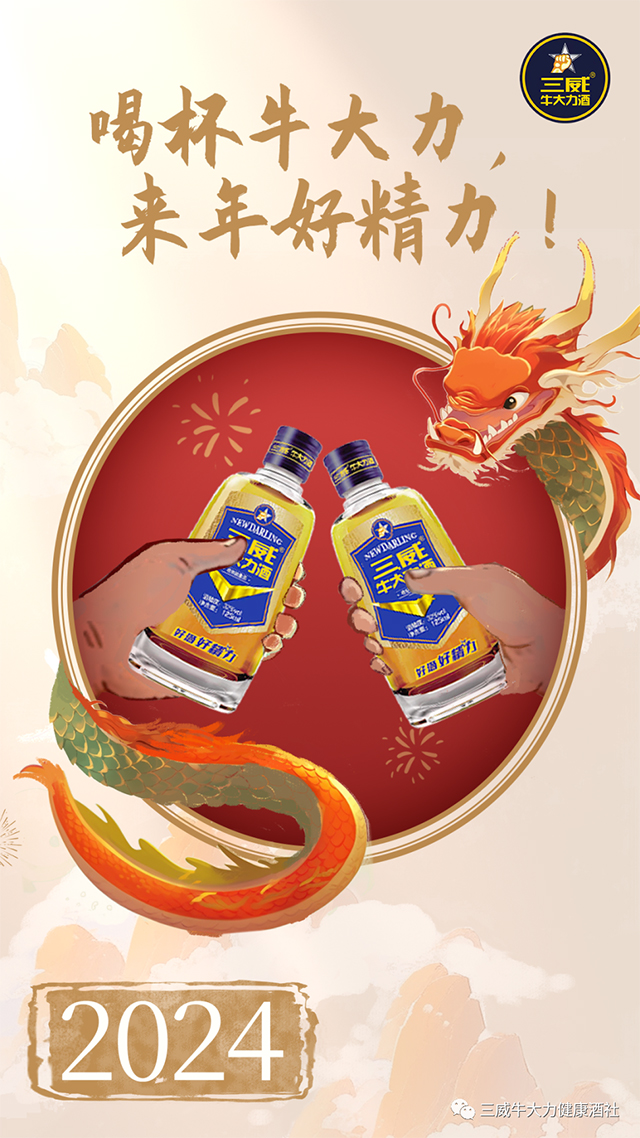 一杯入口,,,,一身活力,,三威牛大力祝您2024元旦快乐!!!